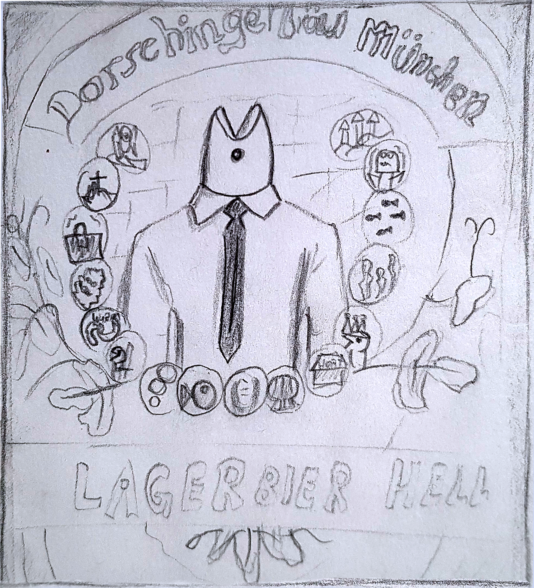 Bei dem Redesign der Marke war es mir besonders wichtig das Design des Original Augustiner Bieres einzufangen, so dass es auch sofort als dieses zu erkennen ist. Dennoch bemühte ich mich darum, einen gewissen eigenen Charme von mir hinzuzufügen. Ich beschloss, anstatt dem altmodischen Original Augustiner Mönchen, einen anzugtragenden Dorsch zu verwenden, um der Marke etwas Kurioses und zugleich Modernes zu verleihen.